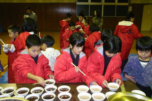 稽古後はお汁粉をいただき新年の抱負が語られました。
