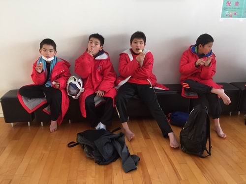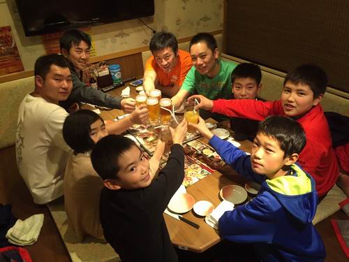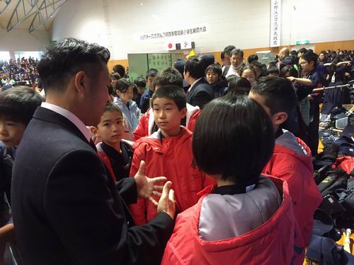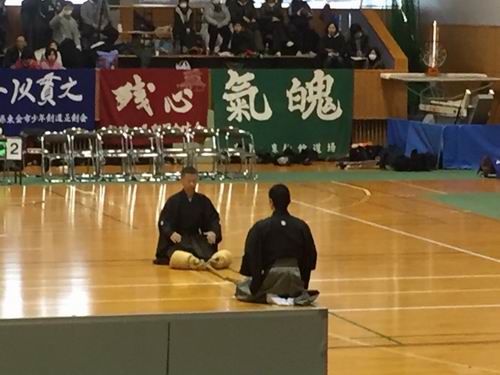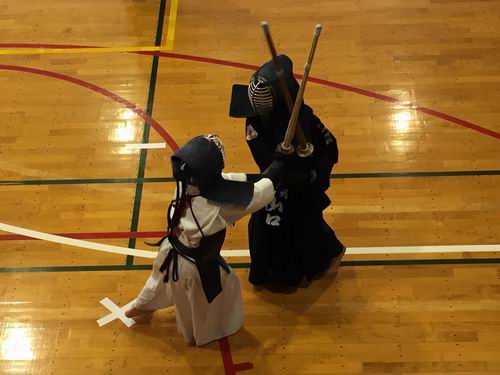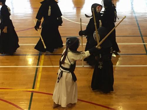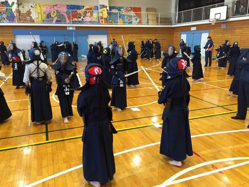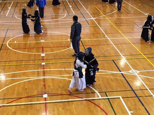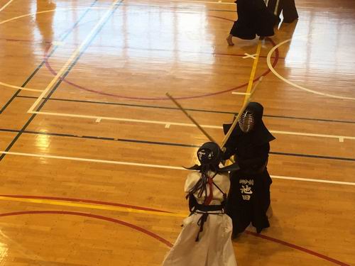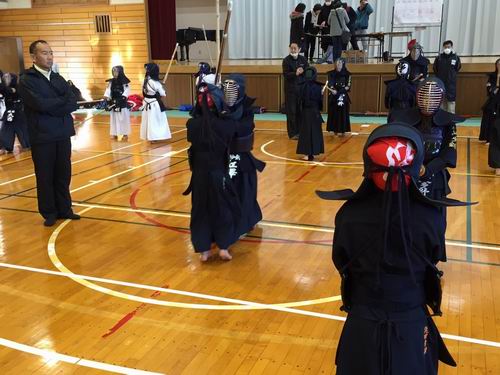 午前午後で16試合を行い、最後は先生方にかかり稽古をお願いしました。試合では、低学年Aチーム対Bチームの対決もありました。